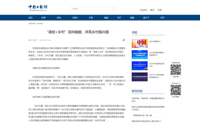未来,江苏建院智能制造学院将继续发挥学院专业优势,以科技创新赋能乡村振兴,为全面推进乡村振兴贡献更多青春力量。
