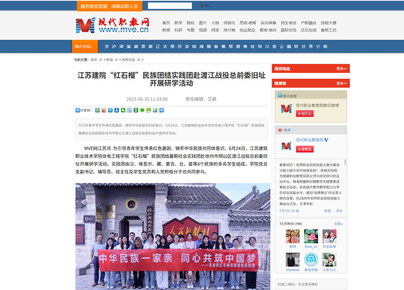 MVE网江苏讯 为引导青年学生传承红色基因、铸牢中华民族共同体意识,6月24日,MK.COM信电工程学院“红石榴”民族团结暑期社会实践团赴徐州市铜山区渡江战役总前委旧址开展研学活动。实践团由汉、维吾尔、藏、蒙古、壮、苗等8个民族的多名学生组成,学院党总支副书记、辅导员、班主任及学生党员和入党积极分子也共同参与。