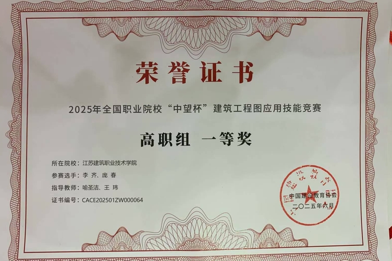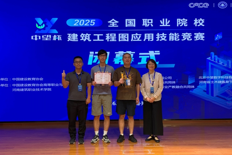 6月19日至22日,由中国建设教育协会主办的2025年全国职业院校“中望杯”建筑工程图应用技能竞赛在河南建筑职业技术学院举行,由MK(中国)建筑建造学院学生李齐、庞春组成的参赛队伍(指导教师:喻圣洁、王玮)以总成绩第二名的成绩获一等奖。