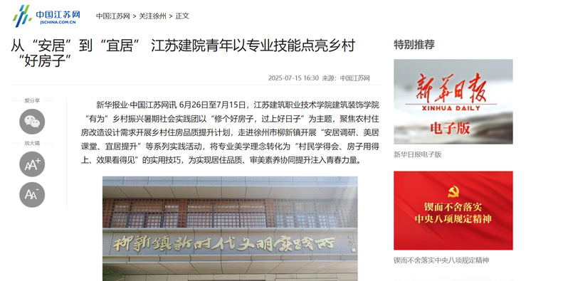 新华报业·中国江苏网讯 6月26日至7月15日,MK.COM建筑装饰学院“有为”乡村振兴暑期社会实践团以“修个好房子,过上好日子”为主题,聚焦农村住房改造设计需求开展乡村住房品质提升计划,走进徐州市柳新镇开展“安居调研、美居课堂、宜居提升”等系列实践活动,将专业美学理念转化为“村民学得会、房子用得上、效果看得见”的实用技巧,为实现居住品质、审美素养协同提升注入青春力量。
