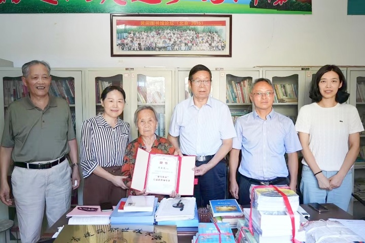 “砸锅卖铁也要让孩子们读书,要把他们培养起来,成为对国家对社会有用的人。”在陈楼镇大顾村陈玉文读书点,九旬老人陈玉文向师生介绍了读书点创办初衷及相关情况,老人家数十载如一日守护农家书屋、推广乡村阅读的事迹打动了在场师生,学院特别为其颁发了“‘爱与传承’公益教育辅导员”聘书。经过前期调研,立足乡村青少年需求,师生精心挑选并向书屋捐赠了210余册图书及30余套文具。志愿者们对现有图书进行分类、整理、上架,建立图书信息台账,同时优化图书借阅流程,更新了书屋的照明、空调设施,营造出更加温馨舒适的阅读环境。