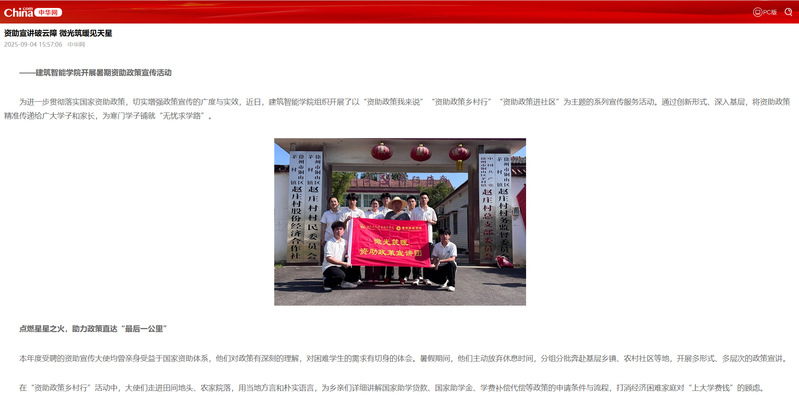 为进一步贯彻落实国家资助政策,切实增强政策宣传的广度与实效,近日,建筑智能学院组织开展了以“资助政策我来说”“资助政策乡村行”“资助政策进社区”为主题的系列宣传服务活动。通过创新形式、深入基层,将资助政策精准传递给广大学子和家长,为寒门学子铺就“无忧求学路”。
